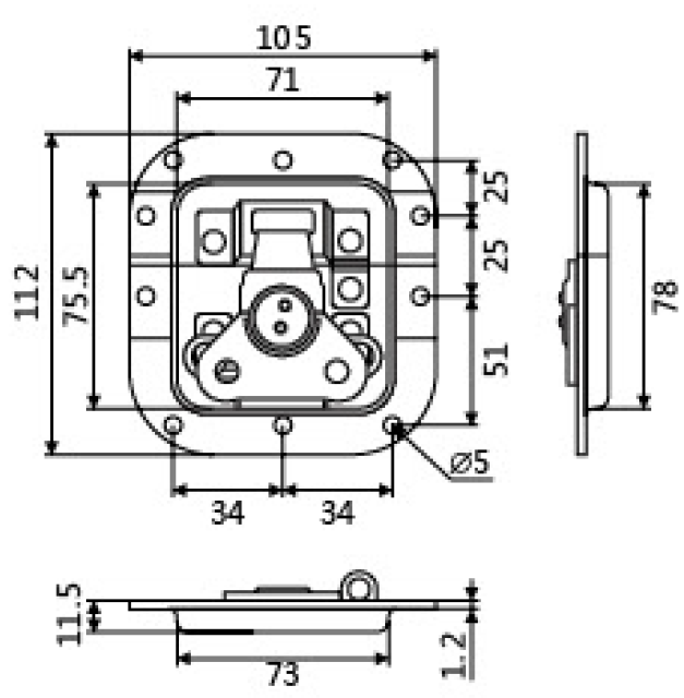 YBS-05DG-CK Fecho borboleta médio c/p cadeado e